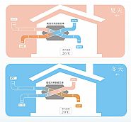 室内排风和新风分别呈正交叉方式流经换热器芯体时,由于气流分隔板两侧气流存在着温差和蒸汽分压差,两股气流通过分隔板时呈现传热传质现象,引起全热交换过程。夏季运行时,新风从空调排风获得冷量,使温度降低,同时被...